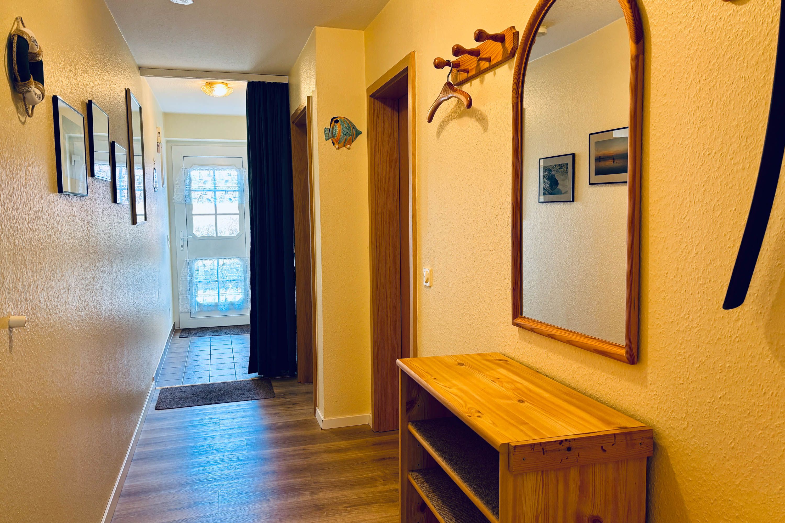 Zum Entspannen sind internetfähiger TV, DAB+-Radio, Spiele und Bücher vor Ort, aber auch genügend Ablagemöglichkeiten für den mitgebrachten Zeitvertreib. Die Ferienohnung verfügt über WLAN. Das geräumige Bad bietet eine Dusche, ein WC, ein Waschbecken und ausreichend Ablage- und Aufhängemöglichkeiten.