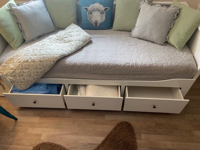 Das moderne Schlafzimmer im 2. OG ist mit großen 180x200cm Doppelbett und geräumigem Kleiderschrank und einem gemütlichen Ikea Schlafbett (Hemnes).