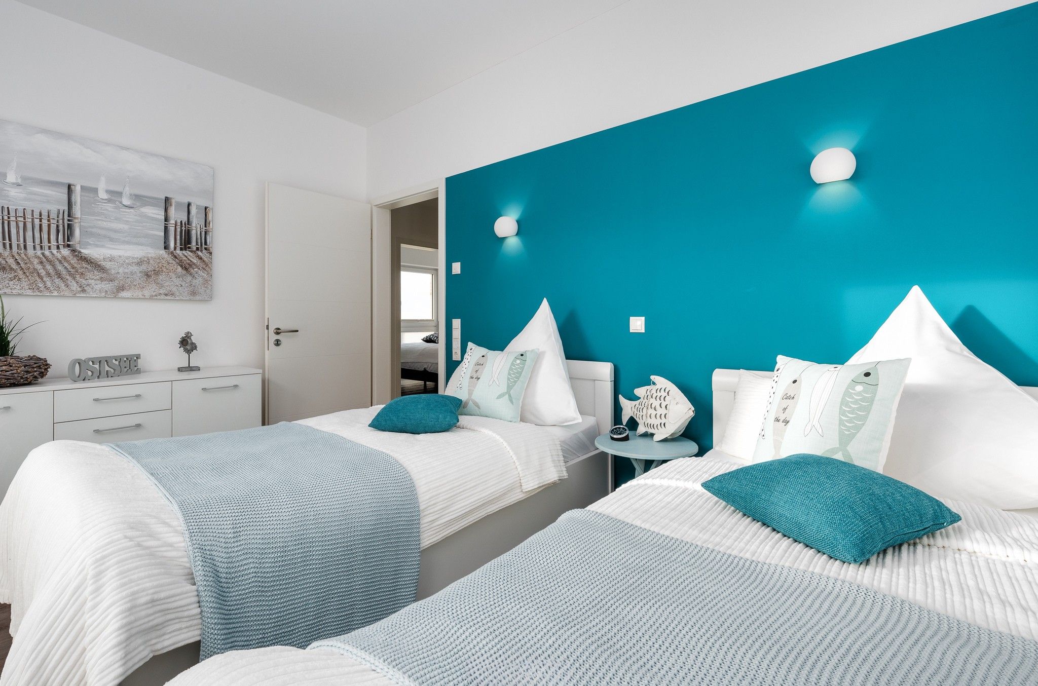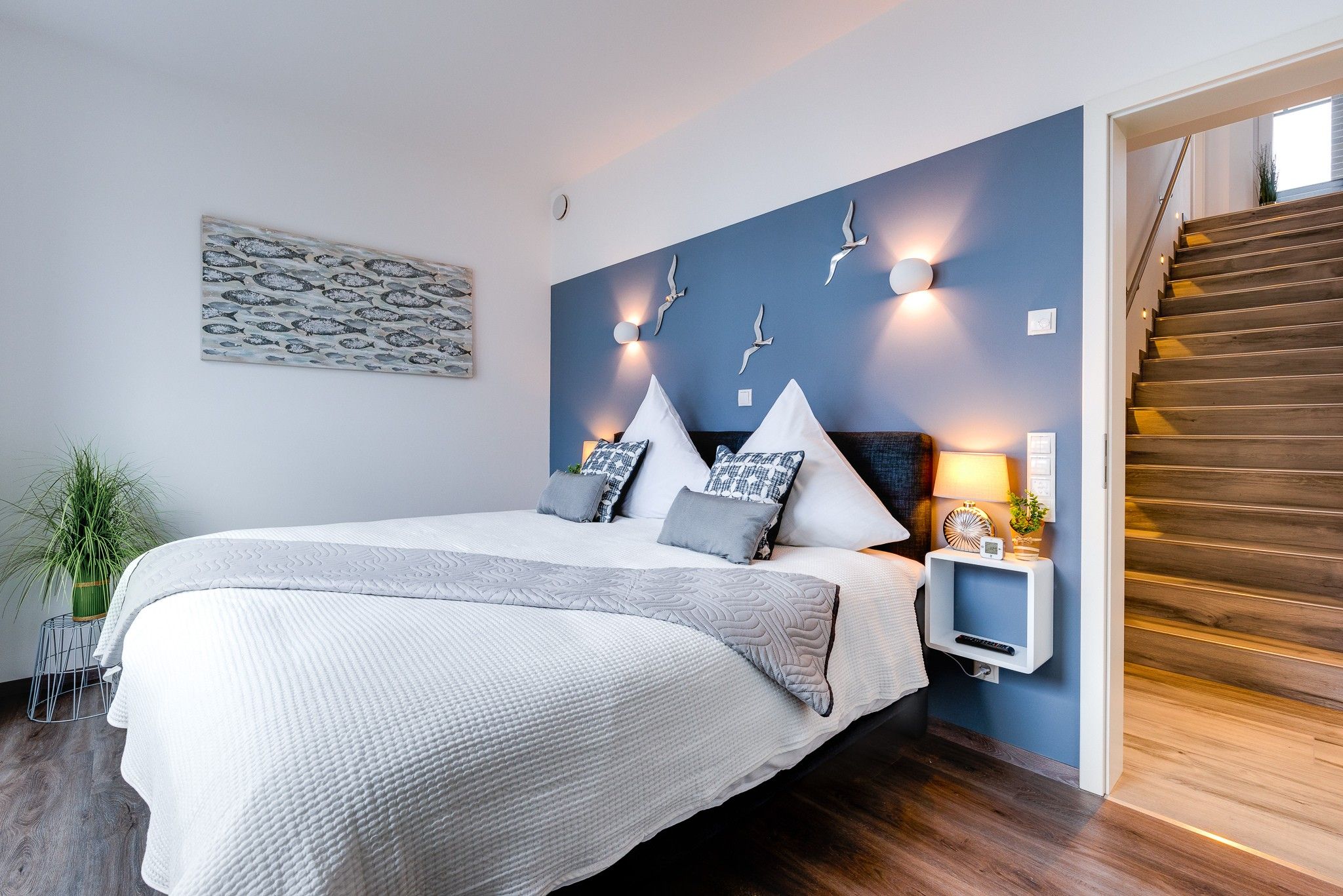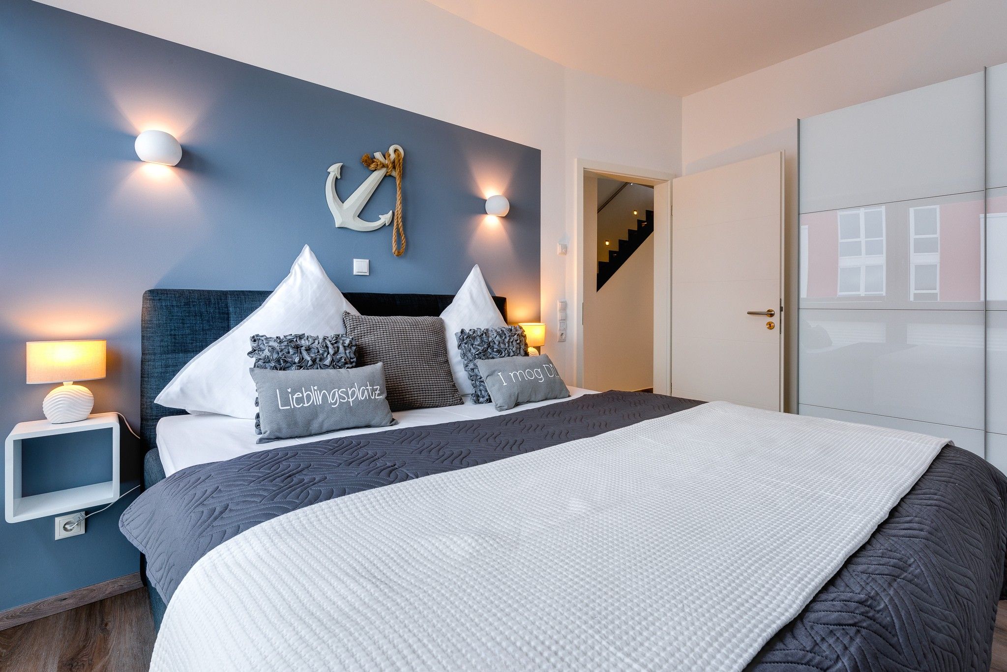 Drei stilvoll eingerichtete Schlafzimmer warten auf Sie: Zwei mit luxuriösen Boxspringbetten ausgestattet, während das dritte Schlafzimmer – ideal als Kinderzimmer – mit zwei Einzelbetten gemütliche Nächte verspricht. Genießen Sie die Annehmlichkeiten von zwei modernen Badezimmern, einer Sauna mit Farbwechseloption für jede Stimmung und einer Badewanne, die Ihnen einen traumhaften Blick auf die Ostsee ermöglicht.