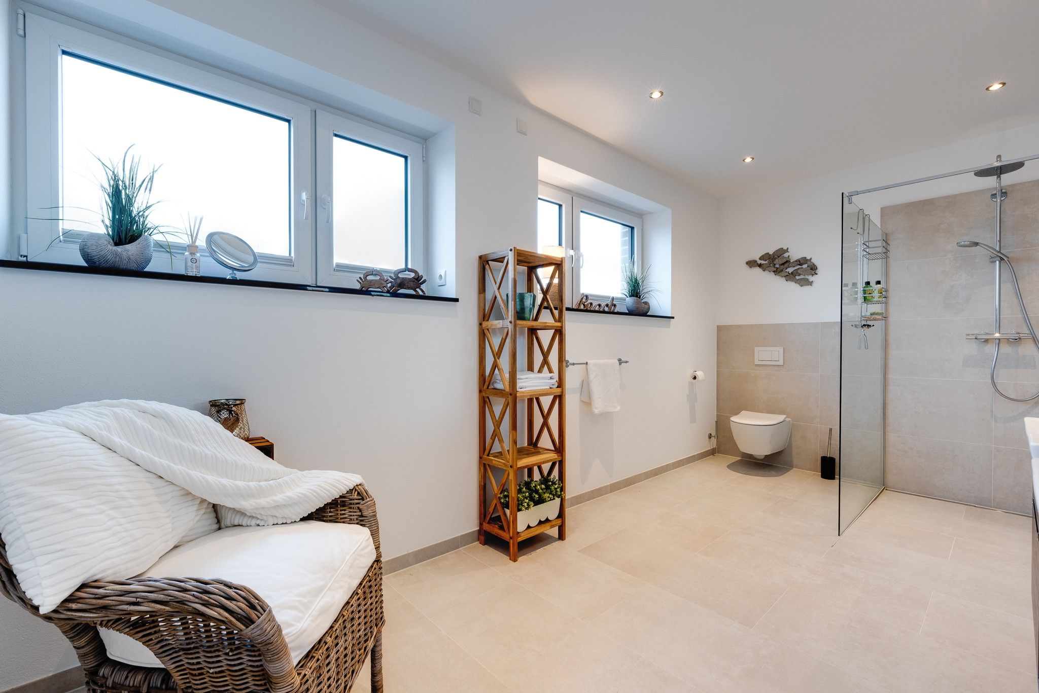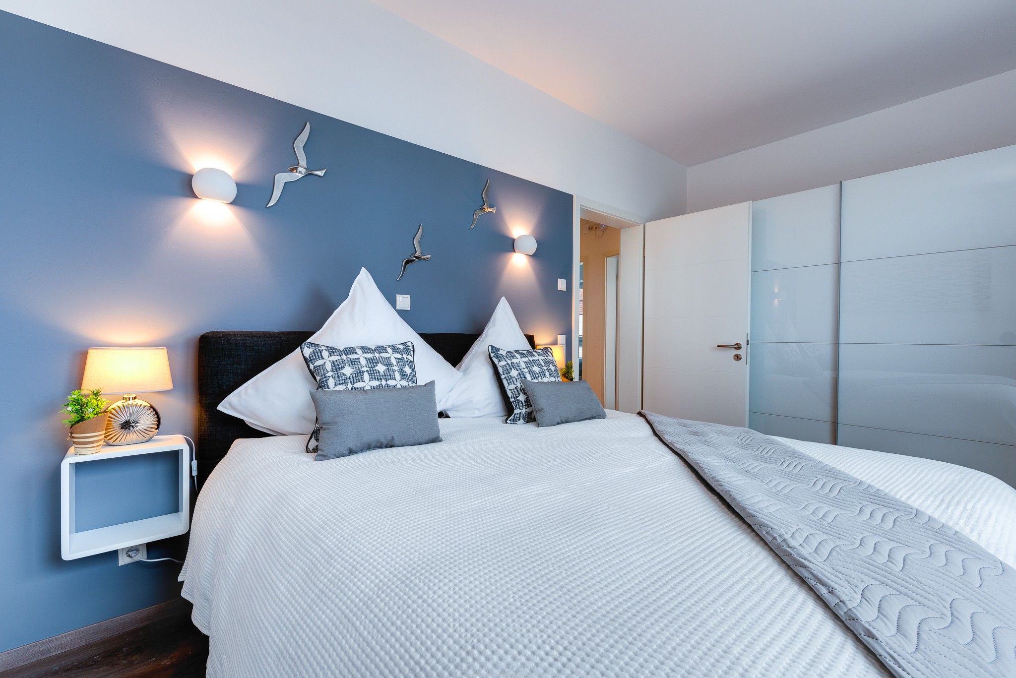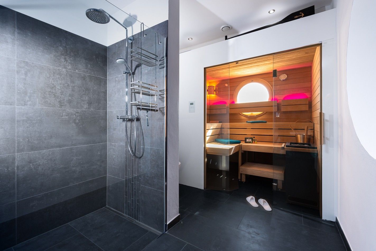 Drei stilvoll eingerichtete Schlafzimmer warten auf Sie: Zwei mit luxuriösen Boxspringbetten ausgestattet, während das dritte Schlafzimmer – ideal als Kinderzimmer – mit zwei Einzelbetten gemütliche Nächte verspricht. Genießen Sie die Annehmlichkeiten von zwei modernen Badezimmern, einer Sauna mit Farbwechseloption für jede Stimmung und einer Badewanne, die Ihnen einen traumhaften Blick auf die Ostsee ermöglicht.