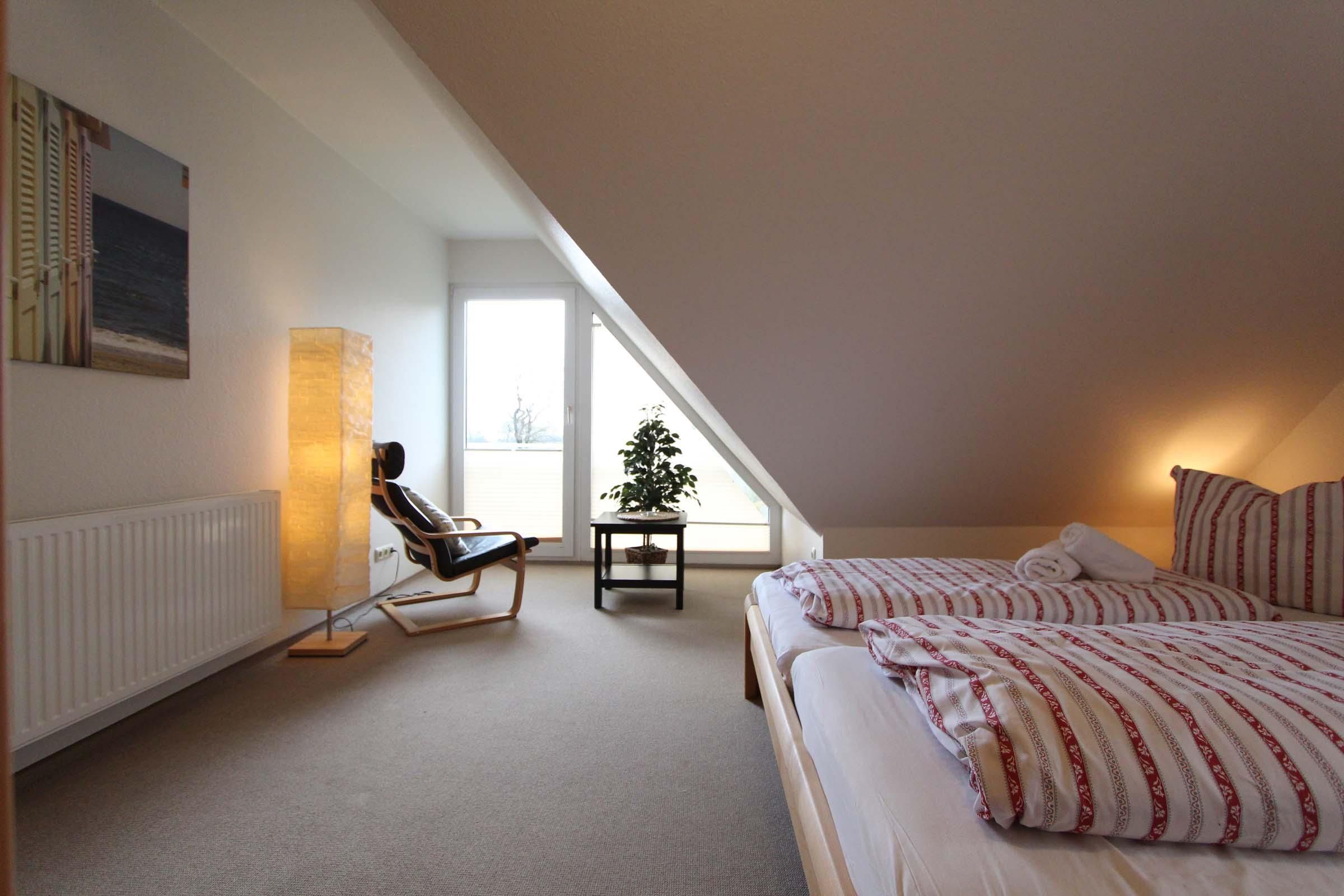 Erholsamer Urlaub in der ca. 72 qm großen Doppelhaushälfte mit Garten und Terrasse. Auf zwei Ebenen kann man hier den Urlaub mit bis zu 4 Personen geniessen. Im Erdgeschoss ist ein großes Wohnzimmer mit Essbereich, Sofaecke und rustikalem, gemütlichem Kaminofen. Die Küche verfügt über eine Mikrowelle und einen Geschirrspüler. Das im Erdgeschoss liegende Duschbad ist modern und schlicht gestaltet. Auf der oberen Etage befinden sich zwei separate Schlafzimmer mit Doppelbetten (2 Matratzen á 0,90x2,00m) und ebenfalls ein schlichtes und modernes Badezimmer. Für die ganz kleinen Gäste gibt es ein Kinder-Reisebett, welches allerdings eine selbstmitgebrachte Matratze benötigt, außerdem ist ein Hochstuhl vorhanden. Die Garage darf gerne mitbenutzt werden. Die sonnige Terrasse und der Garten sind direkt über das Wohnzimmer zu erreichen und haben eine schöne Süd-Ost-Lage. Der Garten ist eingezäunt. Auch dem Urlaub mit dem Haustier steht generell nichts im Wege, denn nach Rücksprache und gegen Aufpreis sind Haustiere gestattet. Innerhalb von ca. 6 Minuten ist man fußläufig direkt am schönen Sandstrand von Kellenhusen. Sollte das Reisegepäck so gering wie möglich ausfallen, dann ist ein Wäschepaket für den Aufenthalt in Kellenhusen gegen Gebühr einfach buchbar und auch eine Waschmaschine und ein Trockner sind in der Wohnung vorhanden.