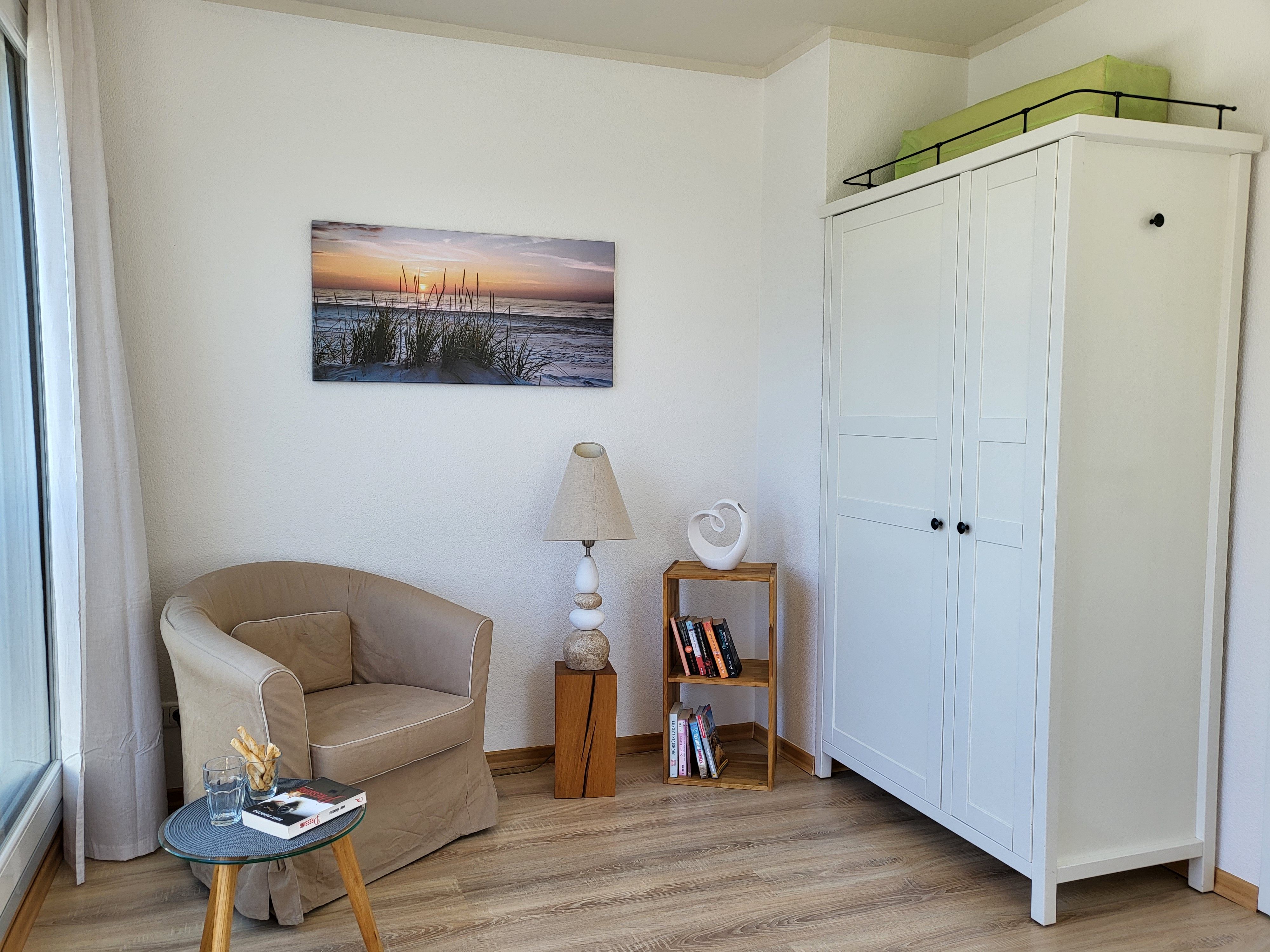 In direkter Nachbarschaft befindet sich ein Waschsalon, ein Fahrradverleih ist ebenfalls ansässig. Auch der Sandstrand der Nordsee ist von hier aus schnell erreicht. Zur Doppelhaushälfte gehört eine möblierte Terrasse sowie ein möblierter Balkon. Durch Lage und Ausstattung eignet sich die Ferienunterkunft auch wunderbar für den Familienurlaub, den Urlaub mit befreundeten Paaren oder den Urlaub mit mehreren Generationen. Am Haus ist eine Wallbox für E-Fahrzeuge vorhanden. Alle Fenster des Objektes sind mit Außenrollläden versehen.