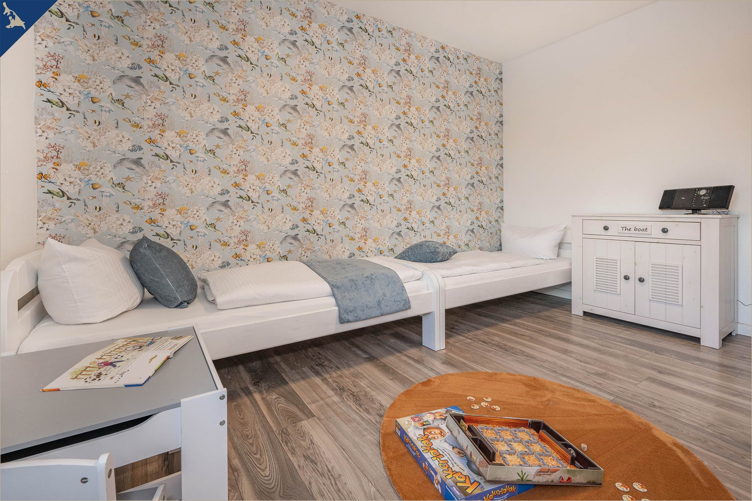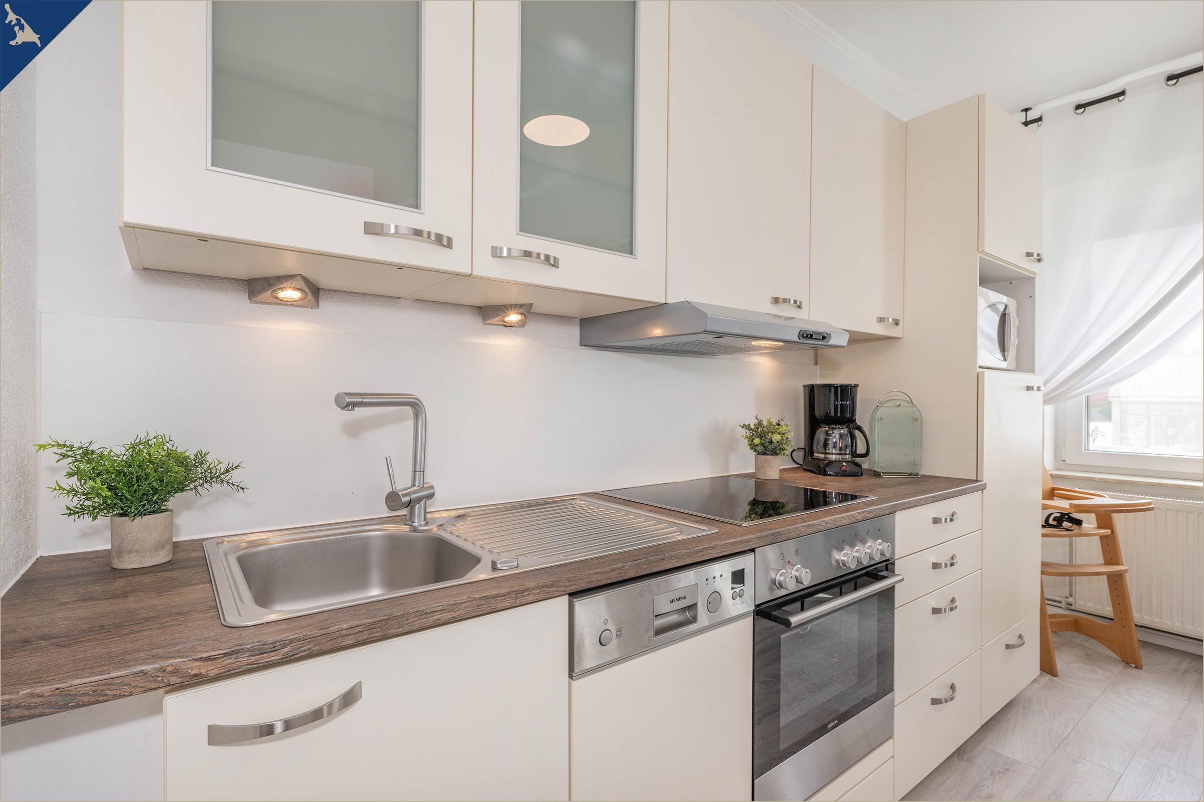 Die Ferienwohnung ist hochwertig ausgestattet und lässt keine Wünsche offen: Die Küche verfügt über Backofen, Herd, Mikrowelle, Kühlschrank mit Gefrierfach sowie eine Spülmaschine. Für gemütliche Abende stehen ein Flachbild-TV, eine HiFi-Anlage, CDs und Brettspiele zur Verfügung. Auch an Familien mit Kindern wurde gedacht: Kinderspielzeug, Kindertoilettensitz und Spiele sorgen für Unterhaltung. WLAN, Fliegengitter, ein Ganzkörperspiegel und viele weitere Extras bieten hohen Komfort.