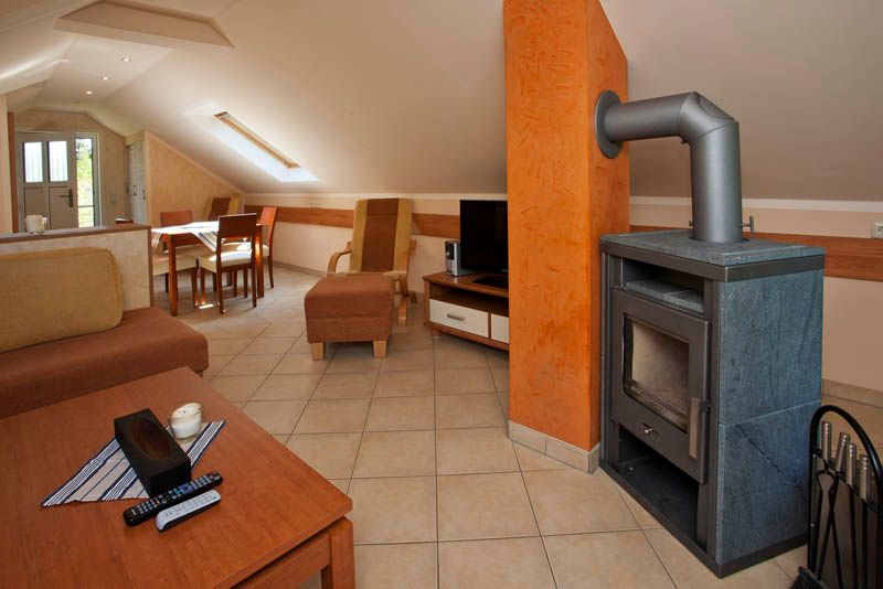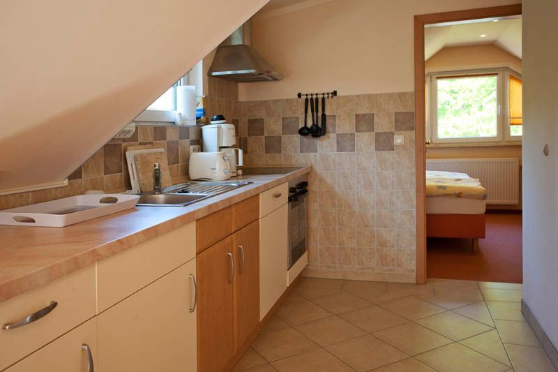 Die Wohnung 3 ist eine 2-Zimmer-Wohnung mit 45 qm Wohnfläche und bietet Platz für 2 Personen. Im Schlafzimmer finden Sie ein Doppelbett. Im Wohnbereich gibt es Fußbodenheizung und einen Kaminofen sowie eine Sitzecke mit Flachbild-TV, Radio. Die voll ausgestattete Einbauküche ist in den Wohnbereich integriert und verfügt über einen Geschirrspüler, Mikrowelle, Ceranherd, Backofen ect.; Das Bad bietet Dusche und WC sowie einen Haartrockner. Vor dem Wohnbereich gibt es einen Balkon.