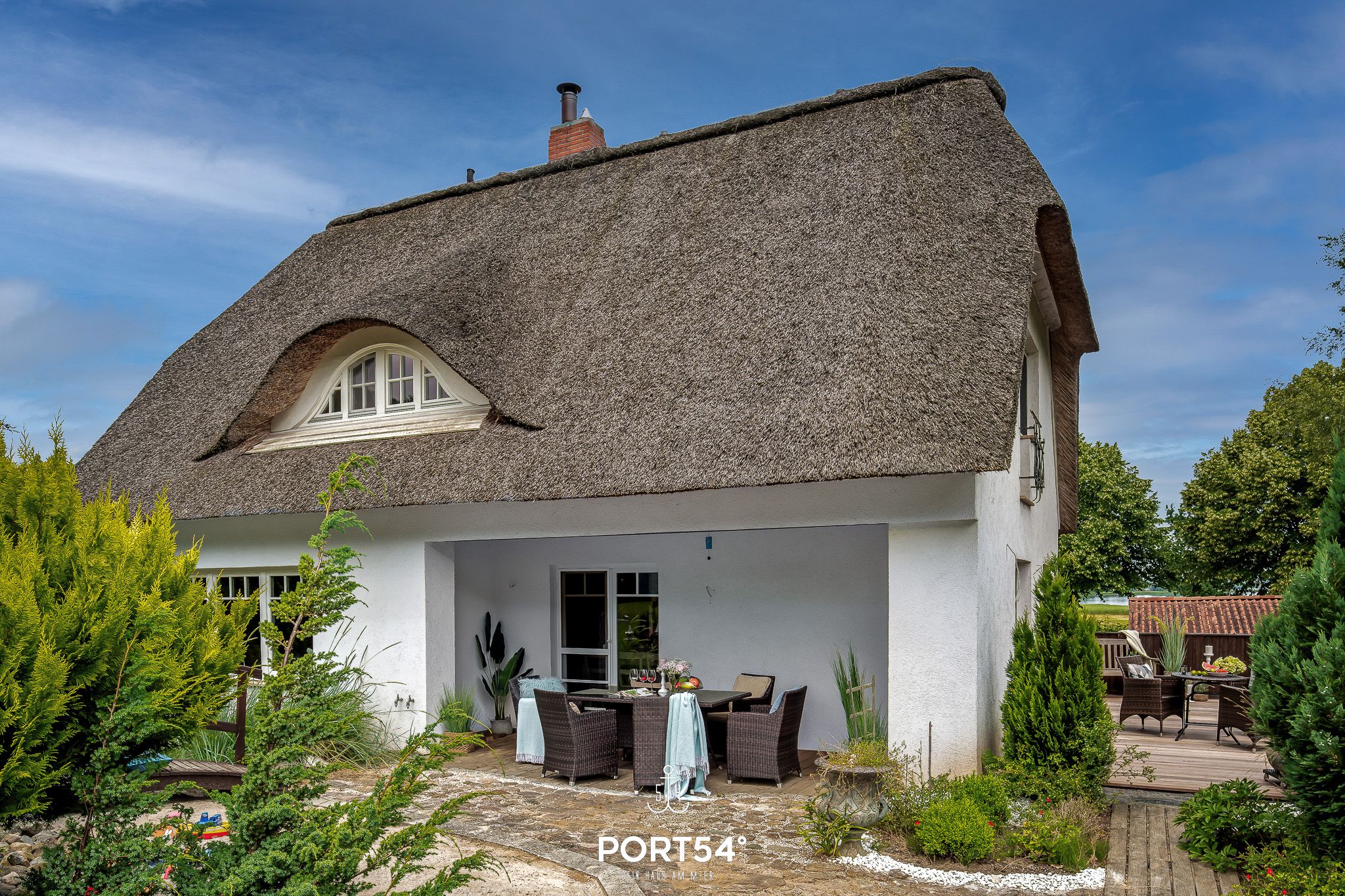 Zu jeder Jahreszeit erwartet Sie ein stilvolles und gemütliches Haus mit Wasserblick auf die Schlei, großem Garten, separatem Saunabereich und großer Whirlwanne. Lassen Sie es sich gut gehen und genießen Sie schöne und entspannte Stunden im Reethüs mit gemütlichem XXL-Sessel vor dem antiken Holzkachelholzofen. Dieses charmante, modern und stilvoll eingerichtete Ferienhaus mit direktem Schleiblick und seiner Großzügigkeit bietet Platz für bis zu 9 Personen. Der 1700 m² große, liebevoll angelegte Garten mit Südausrichtung ist ein Spielparadies für die Kinder oder Ihren Vierbeiner. Das gesamte Grundstück ist mit einem ca. einen Meter hohen Zaun umzäunt. Genießen Sie den Abend auf einer der zwei Terrassen. Machen Sie es sich auf einer der schönen Gartenliegen bequem und genießen Sie die Aussicht. Oder spazieren Sie zum nahegelegenen Selker Noor - einem ruhigen Nebenarm der Schlei, der sich auch perfekt zum Stand-Up-Paddling anbietet. Abends können Sie es sich vor dem antiken Holzkachelofen gemütlich machen. Ein entspanntes Bad in der großen Dreiecks-Whirlwanne (auch zu zweit sehr schön) mit direktem Wasserblick darf natürlich auch nicht fehlen. Ein weiteres Highlight des Hauses ist der gemütliche, separate Saunabereich mit finnischer Sauna, Flusskiesel-Dusche und Ruheraum. Ebenfalls erwähnenswert ist „Schnelles Glasfaser-Internet mit 300 Mbit / s“. Damit ist das Streamen von Filmen oder auch eine Video-Konferenz problemlos und ohne Ruckeln möglich. Im Erdgeschoss erwartet Sie neben einem großen Wohn- und Essbereich mit angrenzender Südterrasse, ein Lesezimmer mit gemütlichem XXL-Sessel und traumhaftem Ausblick auf die Schlei und Schleswig mit dem Dom. Außerdem gibt es ein Gäste-WC und die Küche. Von der Küche aus können Sie die zweite Terrasse mit Südost-Ausrichtung betreten. Diese bietet sich mit Morgensonne ideal für den ersten Kaffee an. Der vom Flur aus abgehende Zugang zum Untergeschoss führt Sie zu einem weiteren Schlafzimmer mit großem Einzelbett (120x200cm). Hier befindet sich auch der großzügige, separate Saunabereich mit Flusskiesel-Dusche und Ruhebereich mit Liegen. In der Waschküche befindet sich ein weiteres WC. Das Obergeschoss verfügt über zwei Schlafzimmer, welche beide mit Doppelbetten ausgestattet sind. Das eine Schlafzimmer verfügt zudem über einen TV und eine Schlafcouch (Liegefläche 130cm), welche Platz für zwei Personen bietet. Das andere Schlafzimmer gewährt den Zugang zum Schlafboden, welcher ein weiteres Doppelbett (160x200cm) bietet. Im großen Badezimmer mit herrlichem Schlei-Blick aus der Dreiecks-Whirlwanne befindet sich ebenfalls eine große Fluss-Kiesel-Dusche. Neben dem Carport, welches überdachten Stellplatz für zwei PKW bietet, verfügt das Grundstück über eine Garage mit zahlreichen Steckdosen zum Aufladen von E-Bikes. Hier ist eine spontane Auszeit möglich, da sich das Haus nur eine Auto-Stunde von Hamburg entfernt befindet! Auch außerhalb der klassischen Hochsaison haben das Haus und die Umgebung bei jedem Wetter viel zu bieten: Ob ein paar Tage gezielte Auszeit - allein oder mit Freunden - bei herrlichem Wasserblick im XXL-Sessel lesen, chillen, Musik hören oder einfach nur spazieren gehen - ob mit oder ohne Hund. Danach in die Whirlwanne mit Blick auf die Schlei oder in die Sauna und dann gemeinsam kochen und einen guten Wein genießen. Schöne und gemütliche Restaurants finden sich z.B. im idyllischen Eckernförde (20 min.) und auch ein Tagesausflug an die Strände von Sylt ist gut möglich - nach Niebüll zum Zug Richtung Sylt sind es vom Haus aus nur 50-60 min. In direkter Umgebung befindet sich ein Golfplatz, Reitmöglichkeiten und im Sommer eine Segelschule. Die Schlei bzw. das ruhige Selker Noor bietet sich fürs Stand-Up-Paddling an. Kinder begeistert die nahe gelegene Tolkschau, sowie das berühmte Museumsdorf Haithabu mit dem Wikinger-Museum u.v.m. Beste Einkaufsmöglichkeiten bietet Schleswig (10 min mit dem Auto). Das stilvolle Eckernförde mit schönen Läden und Restaurants erreicht man bequem in 20 min. Nach Flensburg und an die Ostsee gelangt man in 30 min. und von bzw. nach Hamburg ist es eine gute Stunde.