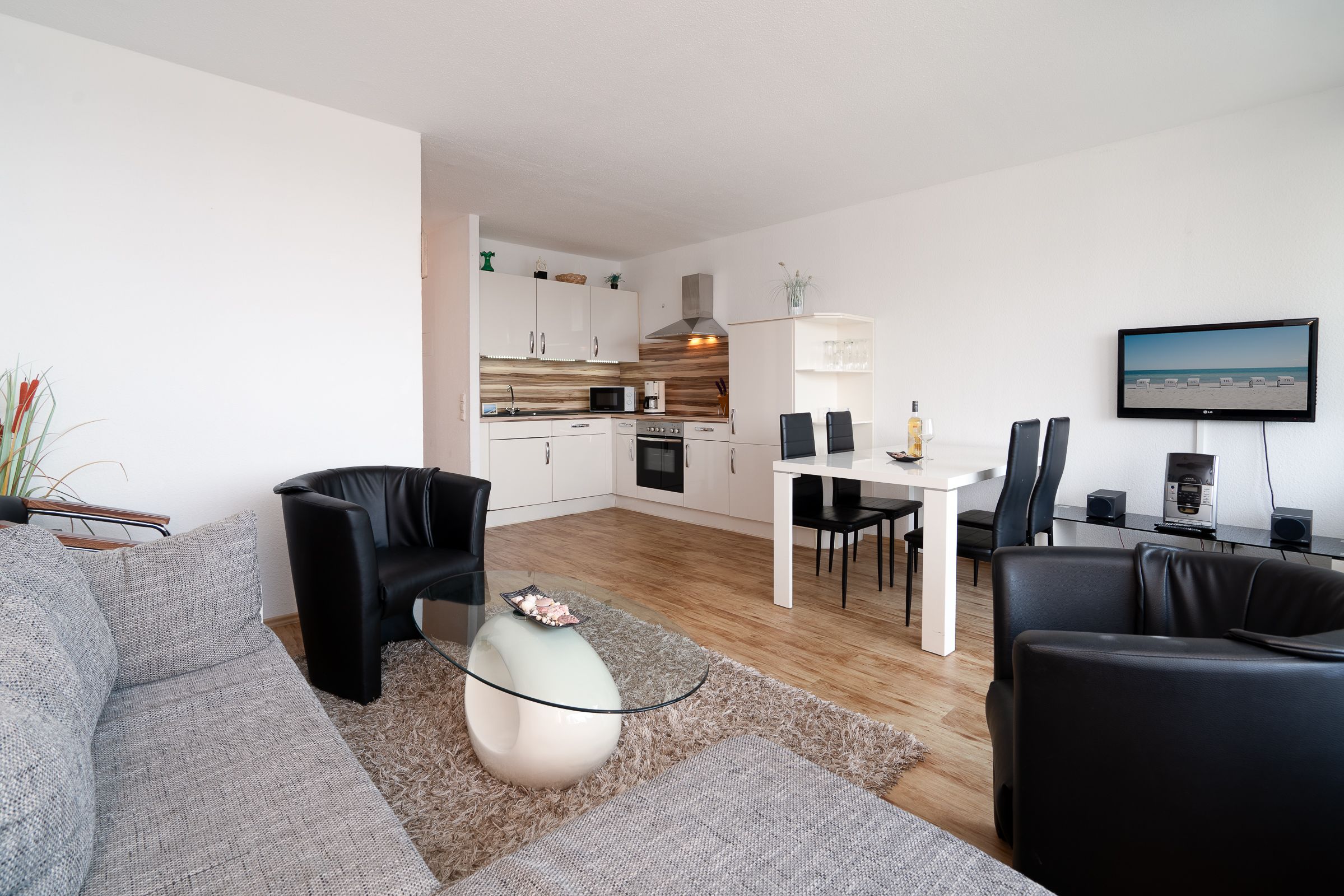 Die schöne 3-Raum-Ferienwohnung Nr. 461 befindet sich in der 11. Etage mit Balkon in Süd-West-Lage und Ostseeblick und ist ideal für Ihren entspannten Familienurlaub am Strand. Die Küche ist mit Geschirrspüler, Backofen und Herd ausgetattet und in den Wohn- und Essbereich integriert. Im ersten Schlafraum befindet sich ein Doppelbett (2x 90 cm x 200 cm) und im Kinderschlafraum ein Etagenbett (jeweils 90 cm x 200 cm). Es gibt ein innenliegendes Badezimmer mit Badewanne. Ohne eine Straße überqueren zu müssen, sind es zum Strand nur wenige Fußschritte. PKW-Stellplatz inklusive.