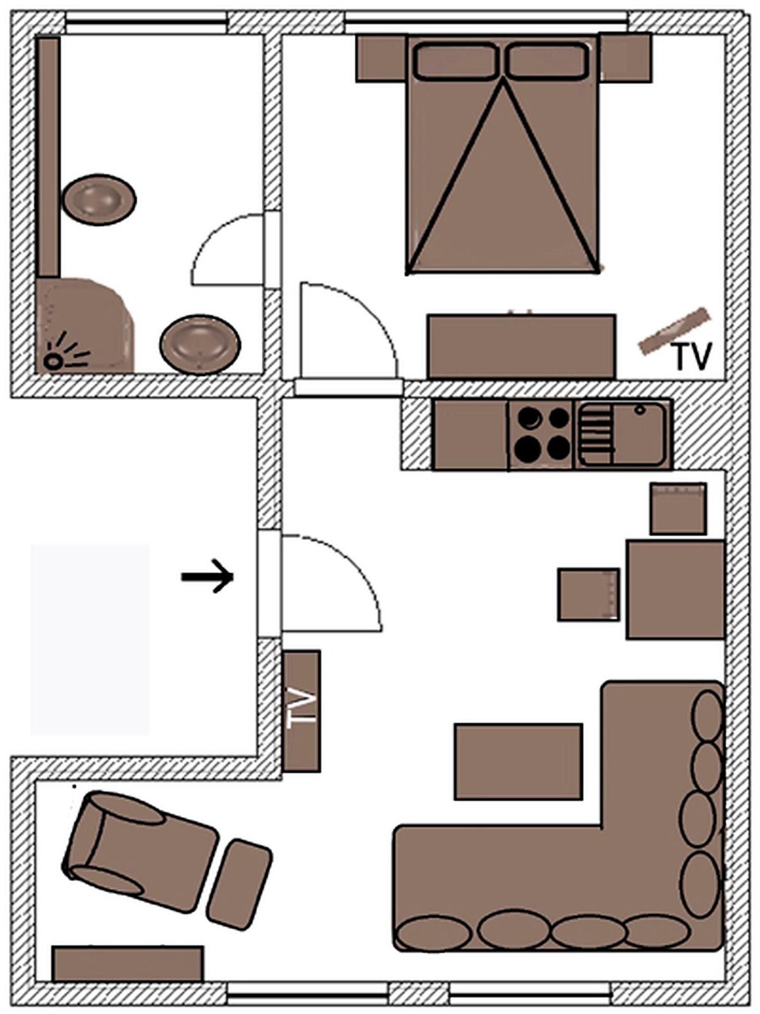 Die Wohnung verfügt über insgesamt 2 Zimmer: ein separates Schlafzimmer und ein Wohnzimmer mit Sofaecke sowie Essbereich. Vinylböden sorgen in Wohn- und Schlafbereich für eine angenehme, pflegeleichte Atmosphäre. Für entspannte Abende stehen Ihnen zwei Fernseher (35–44 Zoll) mit digitalem Kabelanschluss zur Verfügung; außerdem sind Radio, Internet und WLAN vorhanden. Praktische Details wie Garderobe, Schuhschrank, Kommode, Ganzkörperspiegel, Wecker, Bücher, Staubsauger und ein Wäscheständer ergänzen die Ausstattung.