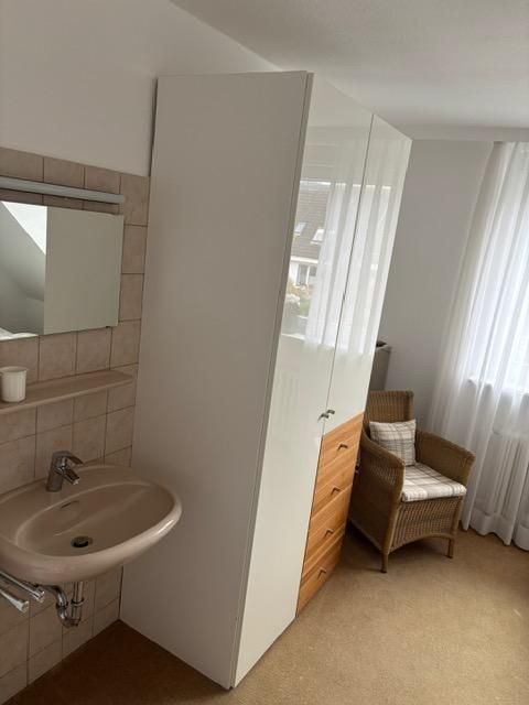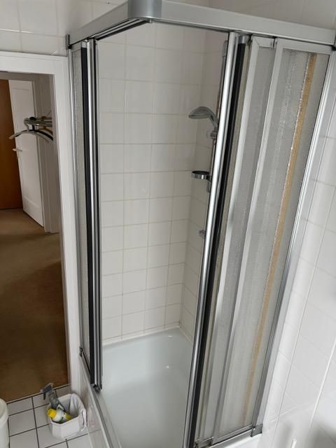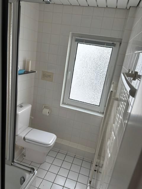 Das Badezimmer ist mit einer Dusche (hoher Einstieg), Waschbecken, Spiegel und Fenster ausgestattet. Für Ihren Komfort gehören Haartrockner, Handtücher und Badetücher zur Erstausstattung. Zusätzlich finden Sie einen Ganzkörperspiegel, ein Bügelbrett, Bügeleisen und alles, was Sie für einen entspannten Aufenthalt benötigen.