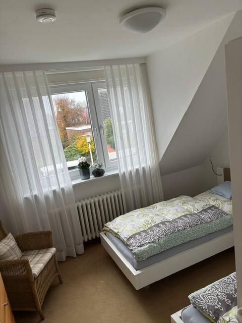 Die Ferienwohnung Lennermann befindet sich in der Südstraße 7 auf Norderney und bietet auf 60 m² Wohnfläche ein familienfreundliches Zuhause für Ihren Urlaub auf der Nordseeinsel. Sie erreichen das Haus bequem und verbringen Ihren Aufenthalt im 1. Stock, von dem aus Sie eine optimale Ausgangslage für Erkundungen der Insel genießen. Das Apartment eignet sich für bis zu 4 Personen und ist mit zwei separaten Schlafzimmern ausgestattet, deren Teppichboden eine angenehme Wohnatmosphäre schafft. Eine gemütliche Sofaecke im Wohnzimmer lädt zum Verweilen ein. Hier steht Ihnen ein moderner Fernseher mit Kabelanschluss (digital, 25–34 Zoll Bildschirmdiagonale) sowie ein Radio für Ihre Unterhaltung zur Verfügung. WLAN ist in der gesamten Wohnung verfügbar.