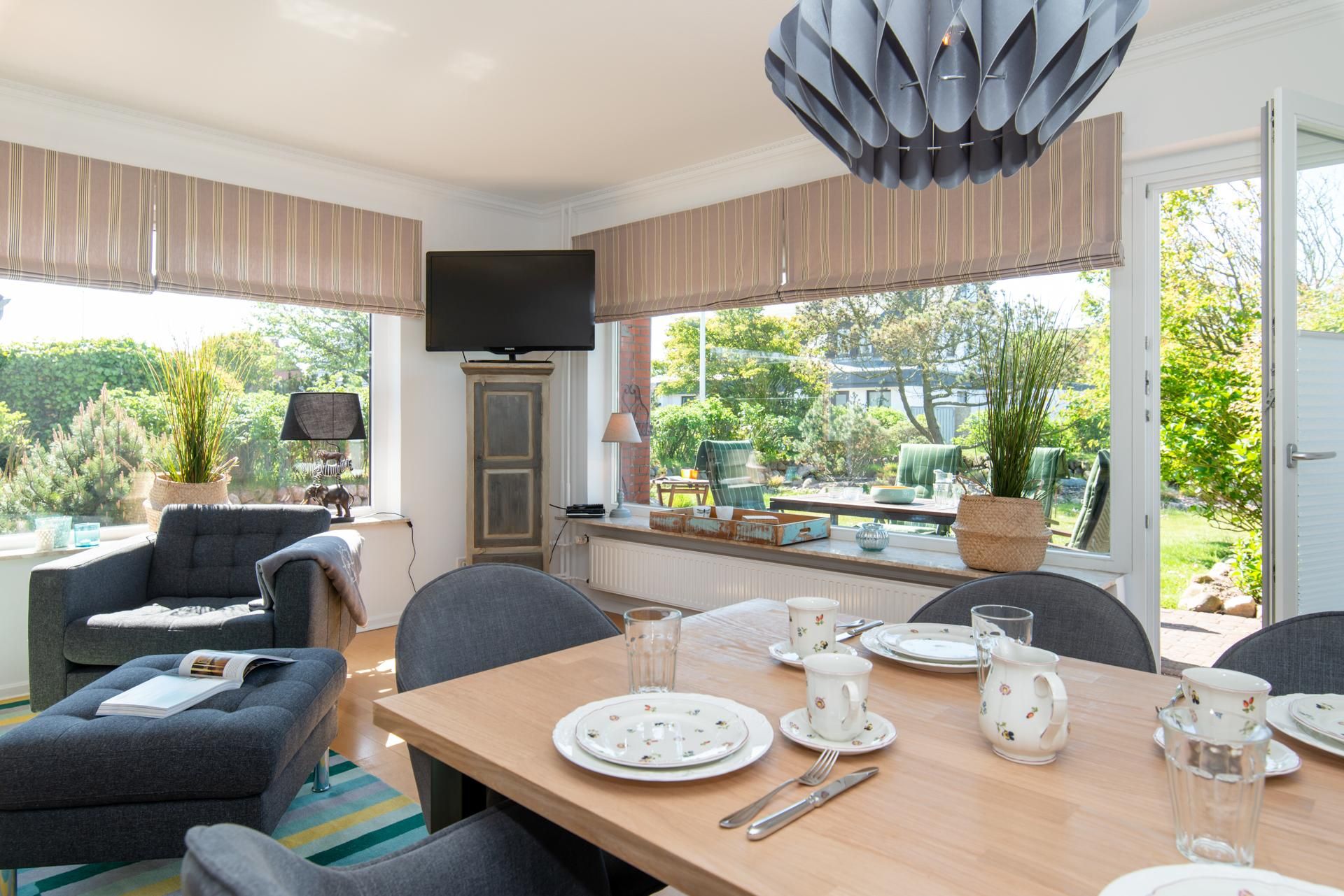 Dieses gemütliche ca. 100 m² große Reihenendhaus für bis zu 5 Personen befindet sich in einer stadt- und strandnahen Lage von Wenningstedt. Das Erdgeschoss bietet Ihnen einen gemütlichen Wohn- und Essbereich und ein Badezimmer samt Badewanne. Die separate, helle Küche samt Geschirrspüler ist voll ausgestattet. Im Obergeschoss erwarten Sie ein Doppelschlafzimmer, ein Einzelschlafzimmer sowie ein Duschbad. Im Dachgeschoss befindet sich ein weiteres Schlafzimmer mit Doppelbett. Nutzen Sie gerne die schöne Südterrasse mit dem angrenzenden Garten und dem Strandkorb (in der Saison). Eine Waschmaschine, WLAN sowie ein zugehöriger PKW-Stellplatz vor dem Haus sind vorhanden. Haustiere sind erlaubt. Genießen Sie tagsüber den schönen Ort Wenningstedt sowie die Insel Sylt und lassen Sie den Abend gemütlich mit der Familie am Kamin ausklingen.