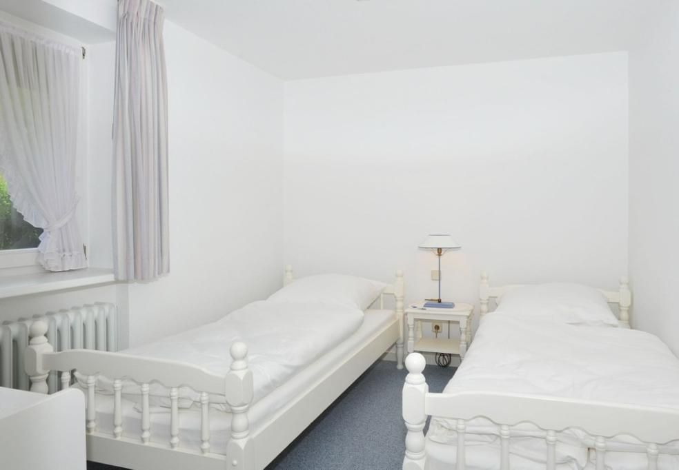Das Haus verfügt über drei einladende Schlafzimmer. Das Hauptschlafzimmer ist mit einem großzügigen Kojen-Doppelbett (240x200 cm), Einbauschrank und TV ausgestattet. Von hier aus genießen Sie einen spektakulären Meerblick – ein einzigartiges Ambiente für eine erholsame Nachtruhe. Das zweite Schlafzimmer bietet zwei Einzelbetten (je 100x200 cm). Das dritte Schlafzimmer ist ebenfalls mit zwei Einzelbetten (je 90x200 cm) und einer Kommode ausgestattet und hat direkten Zugang zum ersten Badezimmer.