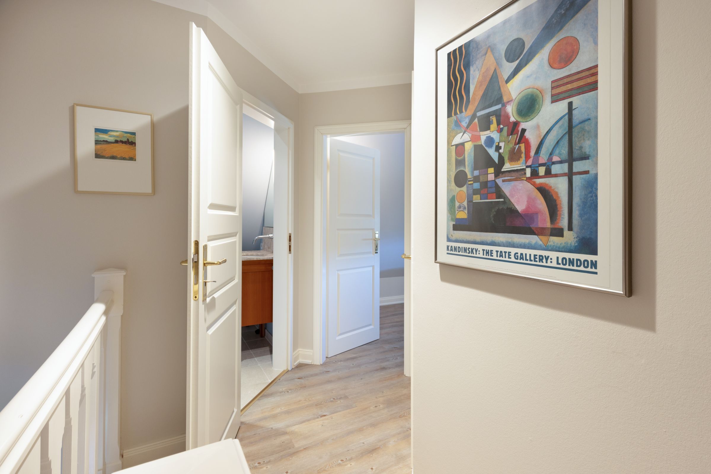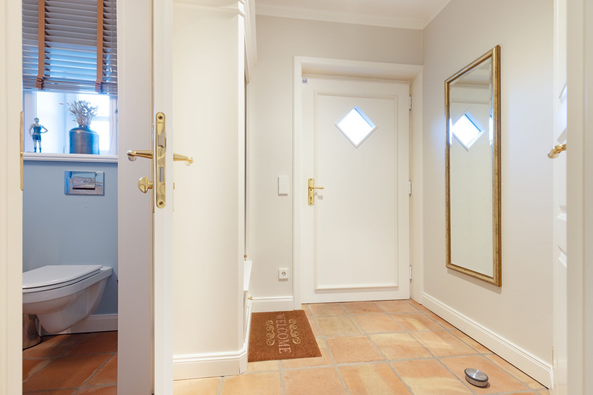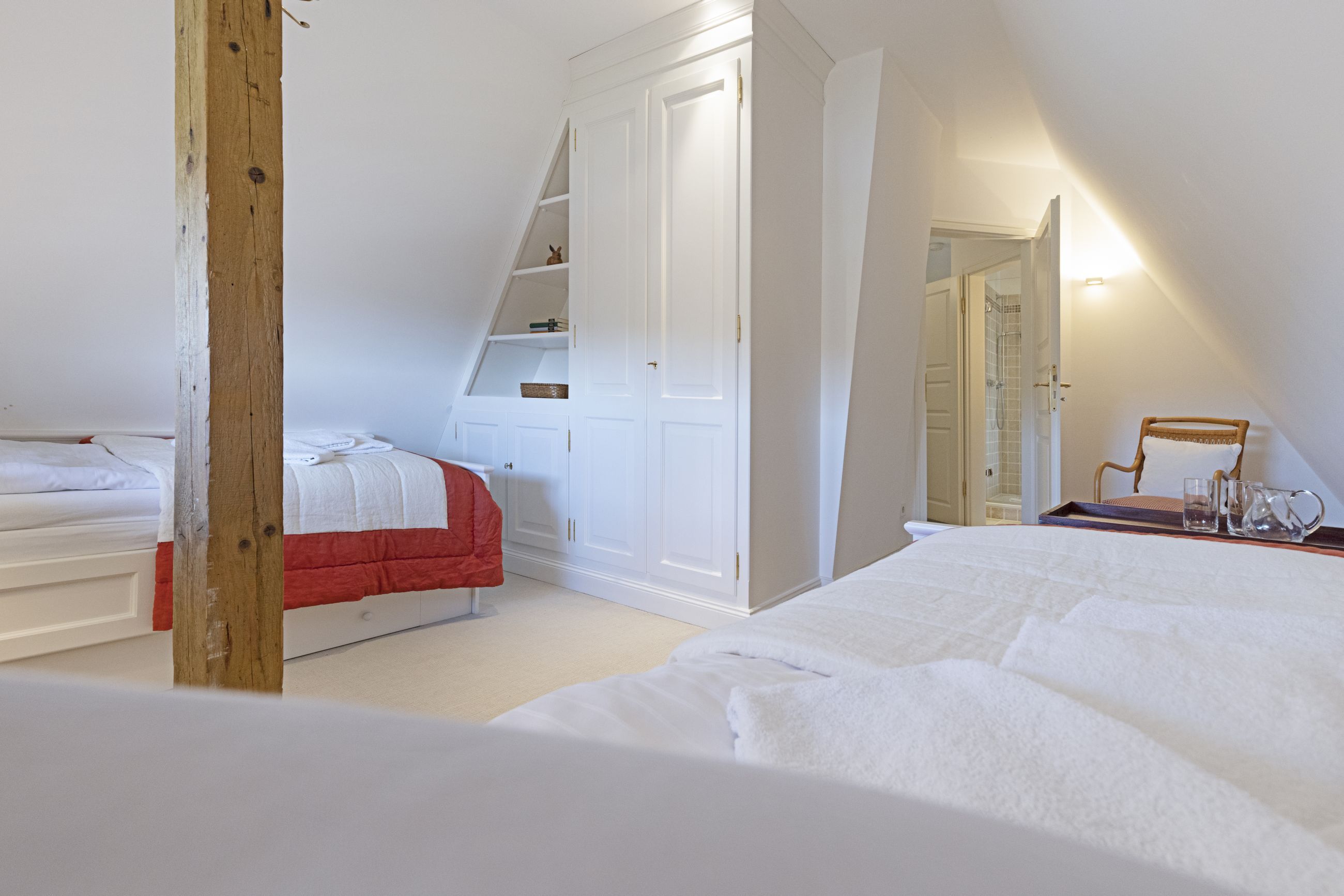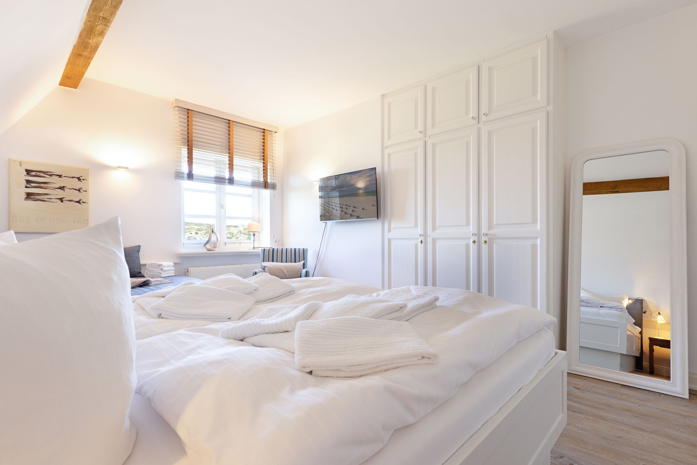Im EG befindet sich ein Gäste-WC. Im ersten Stock befinden sich zwei Schlafzimmer – eines mit Doppelbett, eines mit Doppelbett und einem Einzelbett/Couch und ein Badezimmer mit Dusche und Wanne. Im Dachgeschoss befindet sich noch ein weiteres Schlafzimmer, ebenfalls mit zwei Einzelbetten. Auch hier finden Sie ein Badezimmer mit einer Dusche.