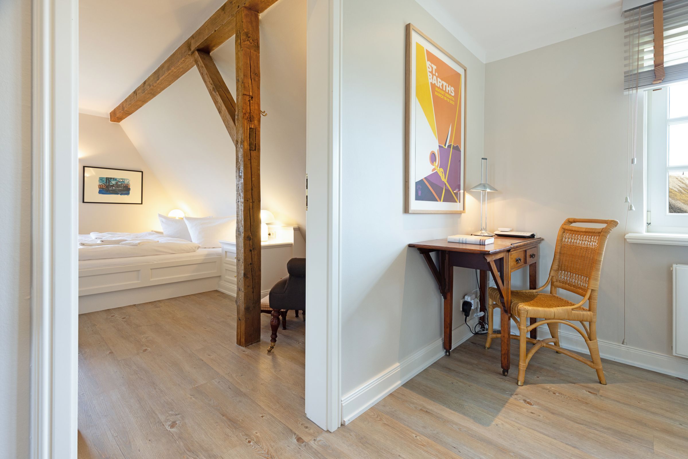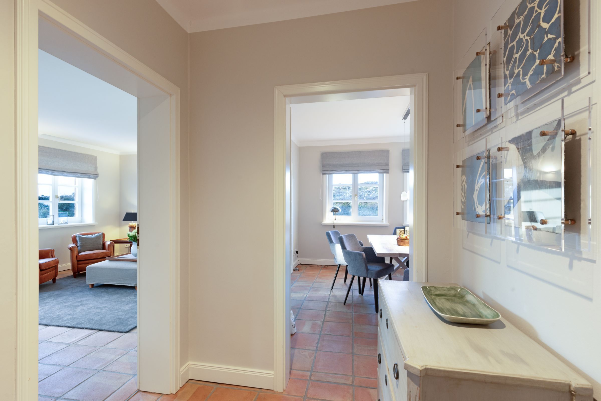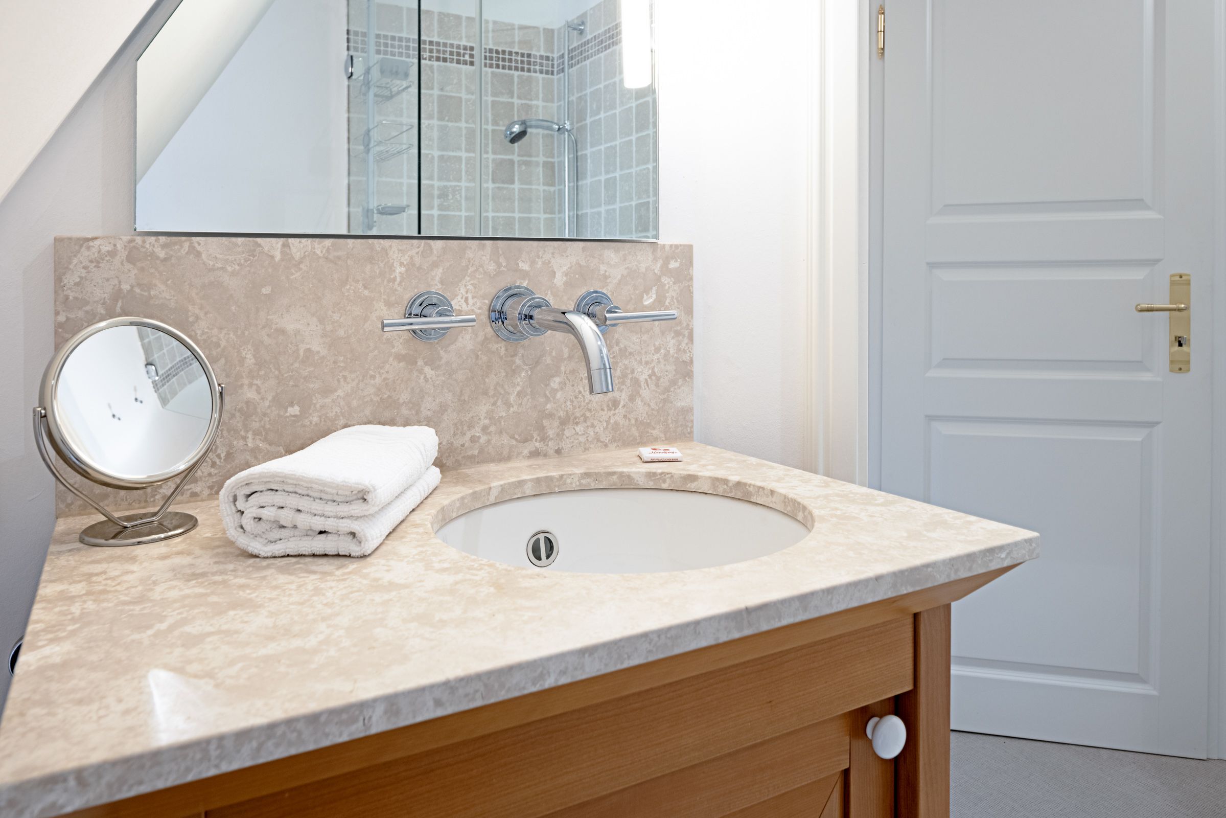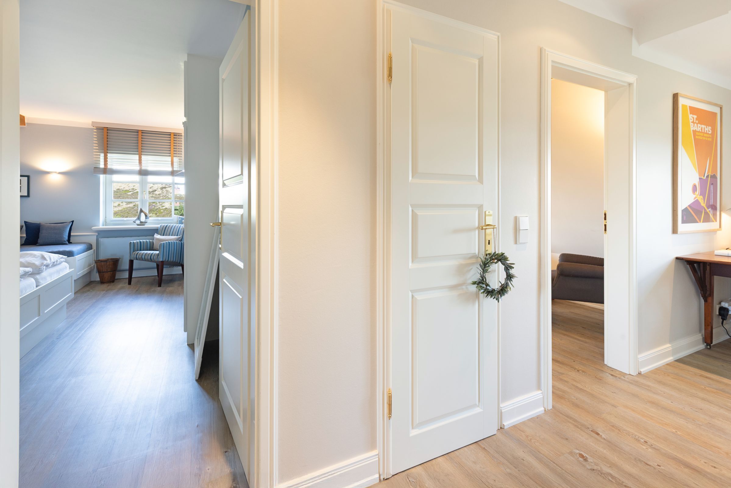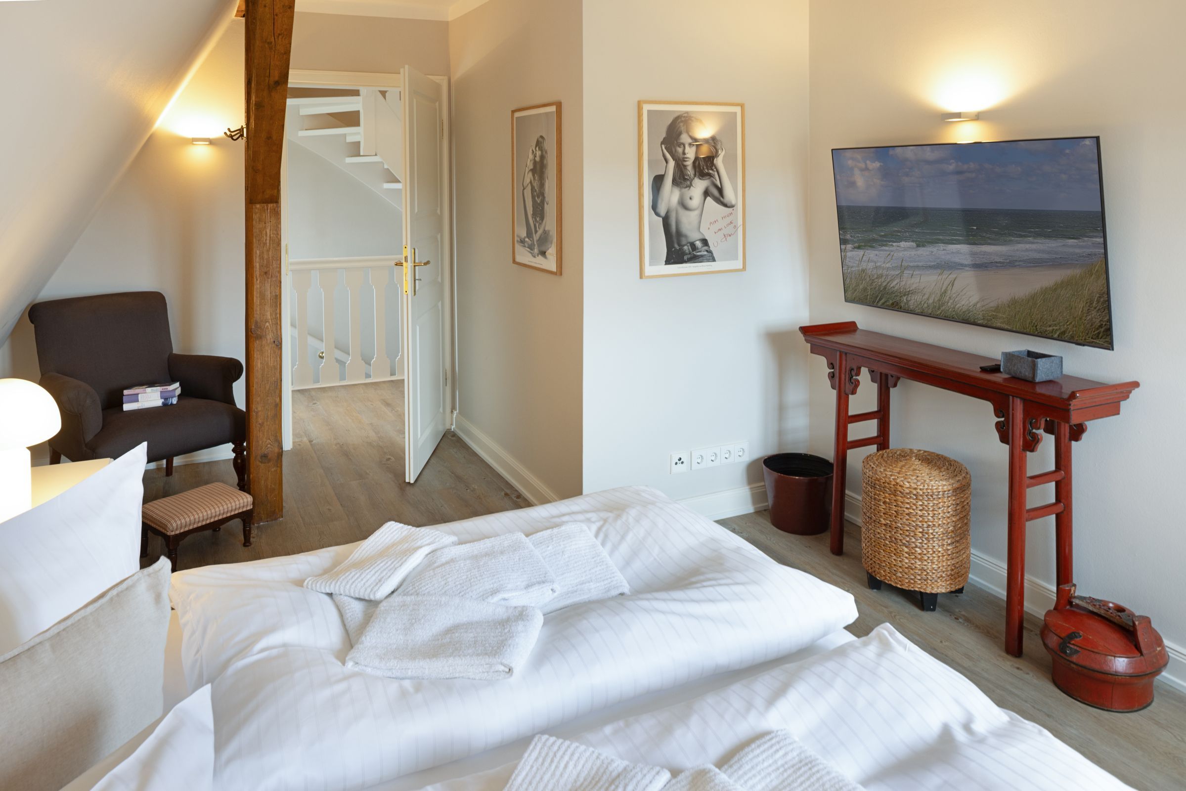 Im EG befindet sich ein Gäste-WC. Im ersten Stock befinden sich zwei Schlafzimmer – eines mit Doppelbett, eines mit Doppelbett und einem Einzelbett/Couch und ein Badezimmer mit Dusche und Wanne. Im Dachgeschoss befindet sich noch ein weiteres Schlafzimmer, ebenfalls mit zwei Einzelbetten. Auch hier finden Sie ein Badezimmer mit einer Dusche.