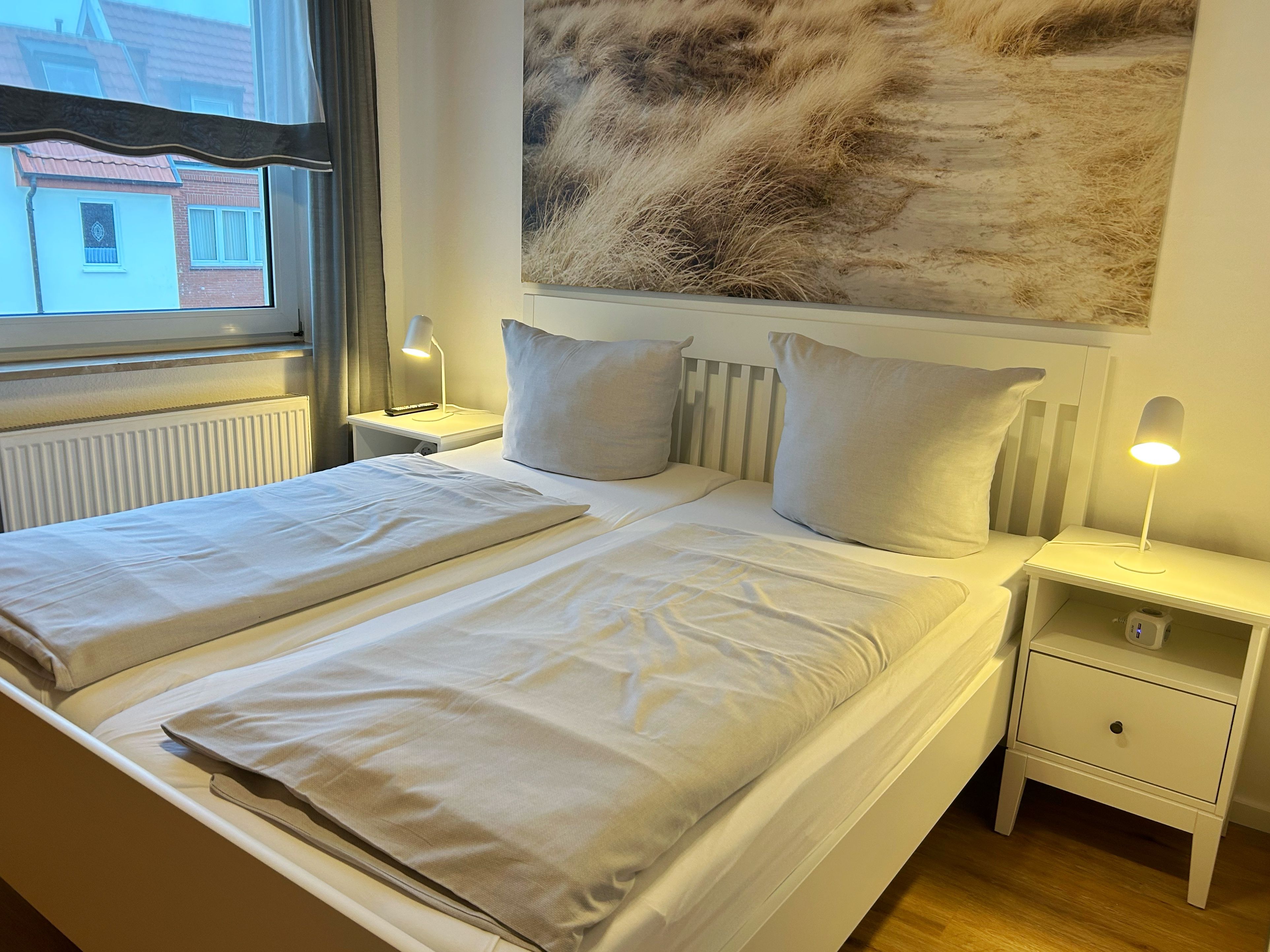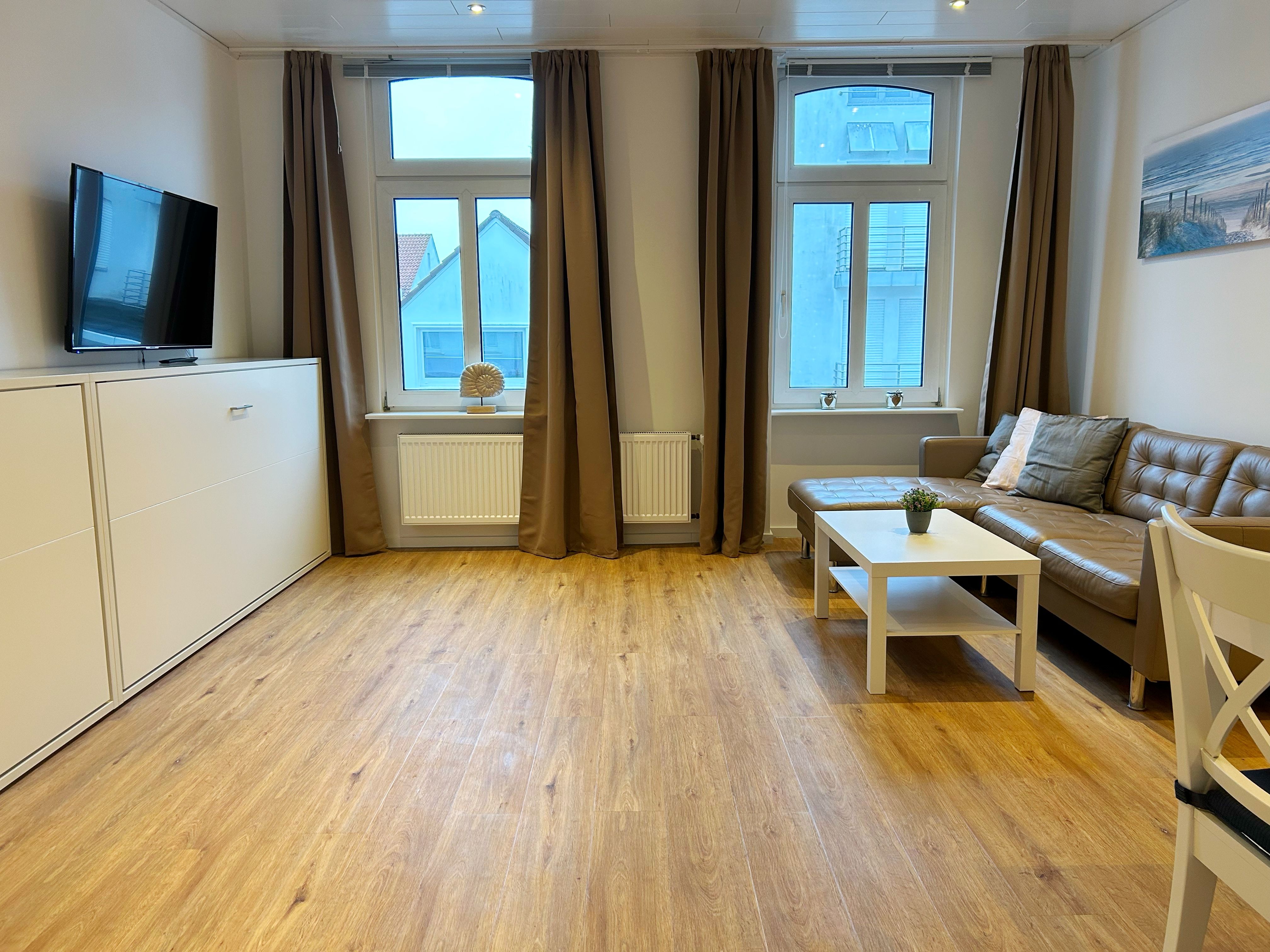 Die komfortable 2-Raum-Ferienwohnung im Stadtzentrum verfügt über einen großzügigen Wohn-/Schlafraum mit zwei Schrankbetten (für Kinder!), Sofaecke (TV) sowie Küchenzeile (Backofen, Spülmaschine, Ceranfeld) mit Essbereich. Vom Flur erreicht man das separate Schlafzimmer mit Doppelbett (TV) sowie das neu-renovierte Badezimmer mit Dusche/ WC. NICHTRAUCHERWOHNUNG! Kostenfreies WLAN steht zur Verfügung.