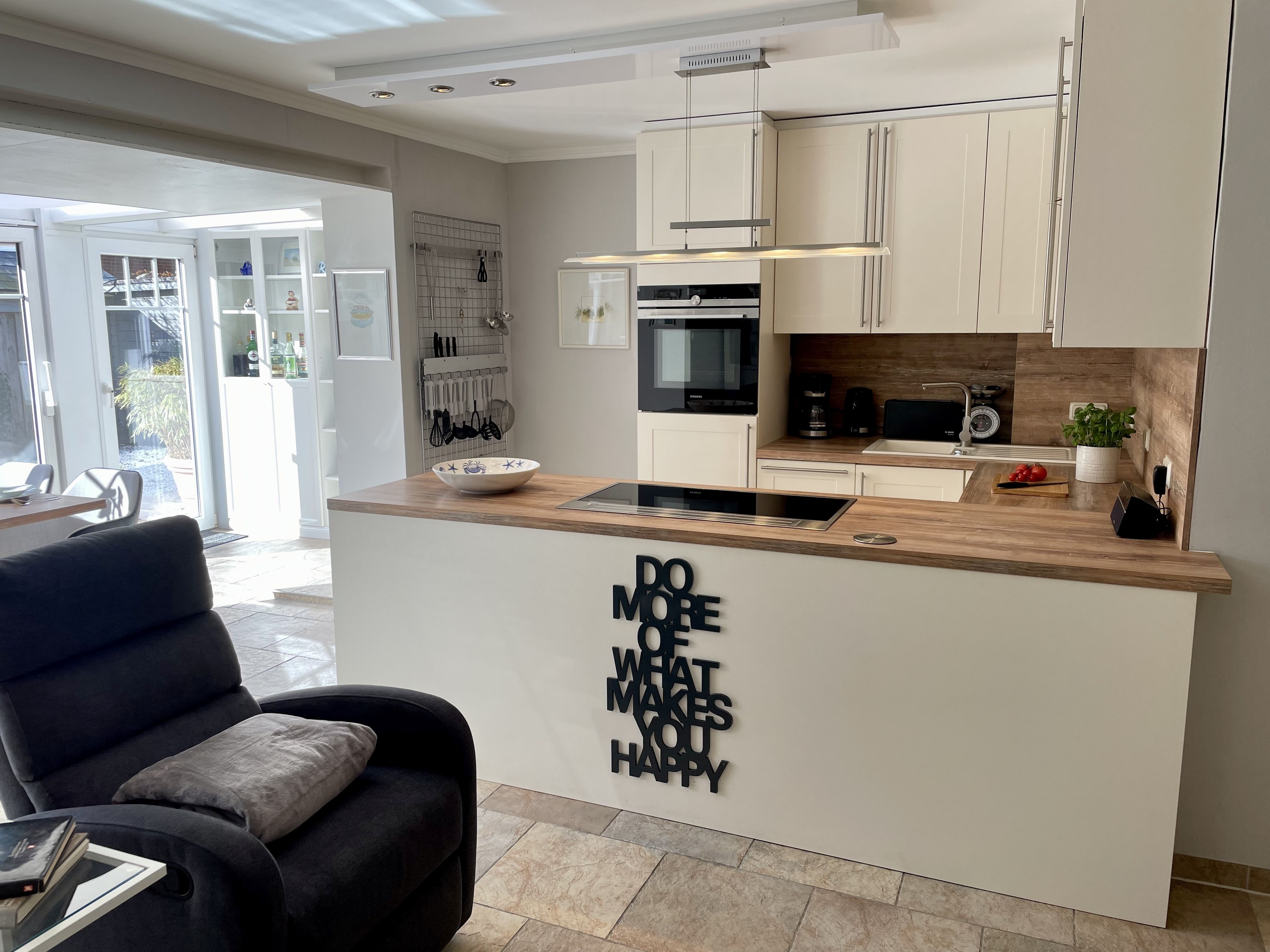 Diese ca. 70 m² große Ferienwohnung für bis zu 2 Personen befindet sich in ruhiger und strandnaher Lage. Die "Jenny´s Stuv" bietet Ihnen eine luxuriöse Ausstattung und absoluten Komfort. Die offene, moderne Küche samt Geschirrspüler ist voll ausgestattet und lädt zum gemeinsamen Kochen ein. Genießen Sie entspannte Urlaubstage im angrenzenden Wohn- und Essbereich. Die Ferienwohnung verfügt über ein Doppelschlafzimmer sowie ein großzügiges Badezimmer samt Dusche. Der Wohnraum ist mit einem Flat TV ausgestattet. Nutzen Sie die einzigartige Westterrasse und den angrenzenden Entspannungsbereich samt Gartenlounge. Die Ferienwohnung verfügt über WLAN, einem zugehörigen PKW-Stellplatz vor dem Haus, eine Waschmaschine sowie einen Wäschetrockner. Ein Haustiere ist erlaubt. Genießen Sie tagsüber den schönen Ort Westerland sowie die Insel Sylt und lassen Sie den Abend gemütlich am Kaminofen ausklingen.