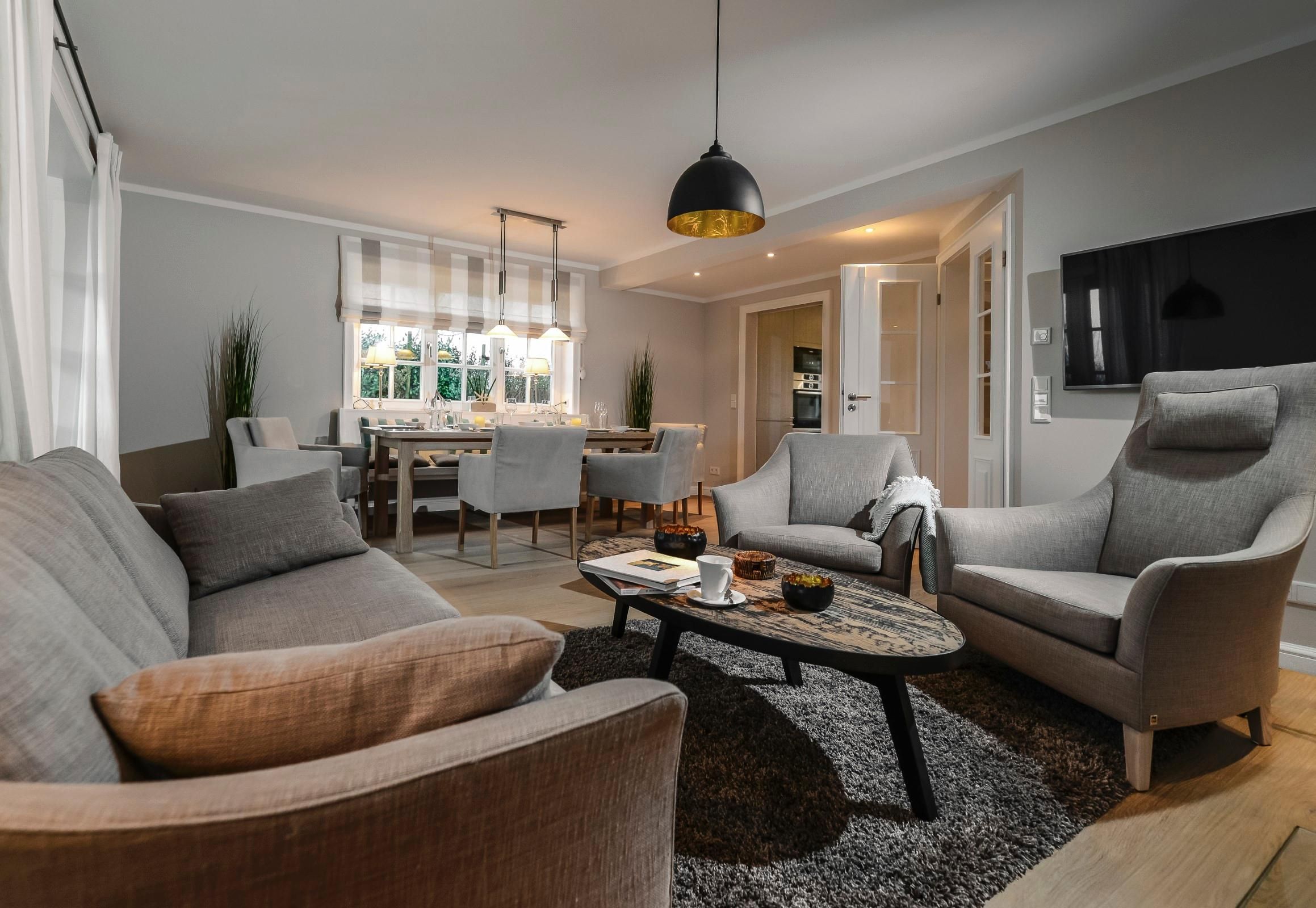 Unweit der Keitumer Deichwiesen befindet sich diese exklusive Doppelhaushälfte unter Reet. Hochwertig eingerichtet und mit vielen aufwendigen Tischlereinbauten versehen, bietet es jede Menge Komfort für Ihre schönsten Tage im Jahr. Vor dem offenen Kamin oder in der Sauna lässt sich nach einem Spaziergang an der Sylter Luft herrlich entspannen. Viel Platz bietet auch die große Sonnenterrasse im eingewachsenen Garten.