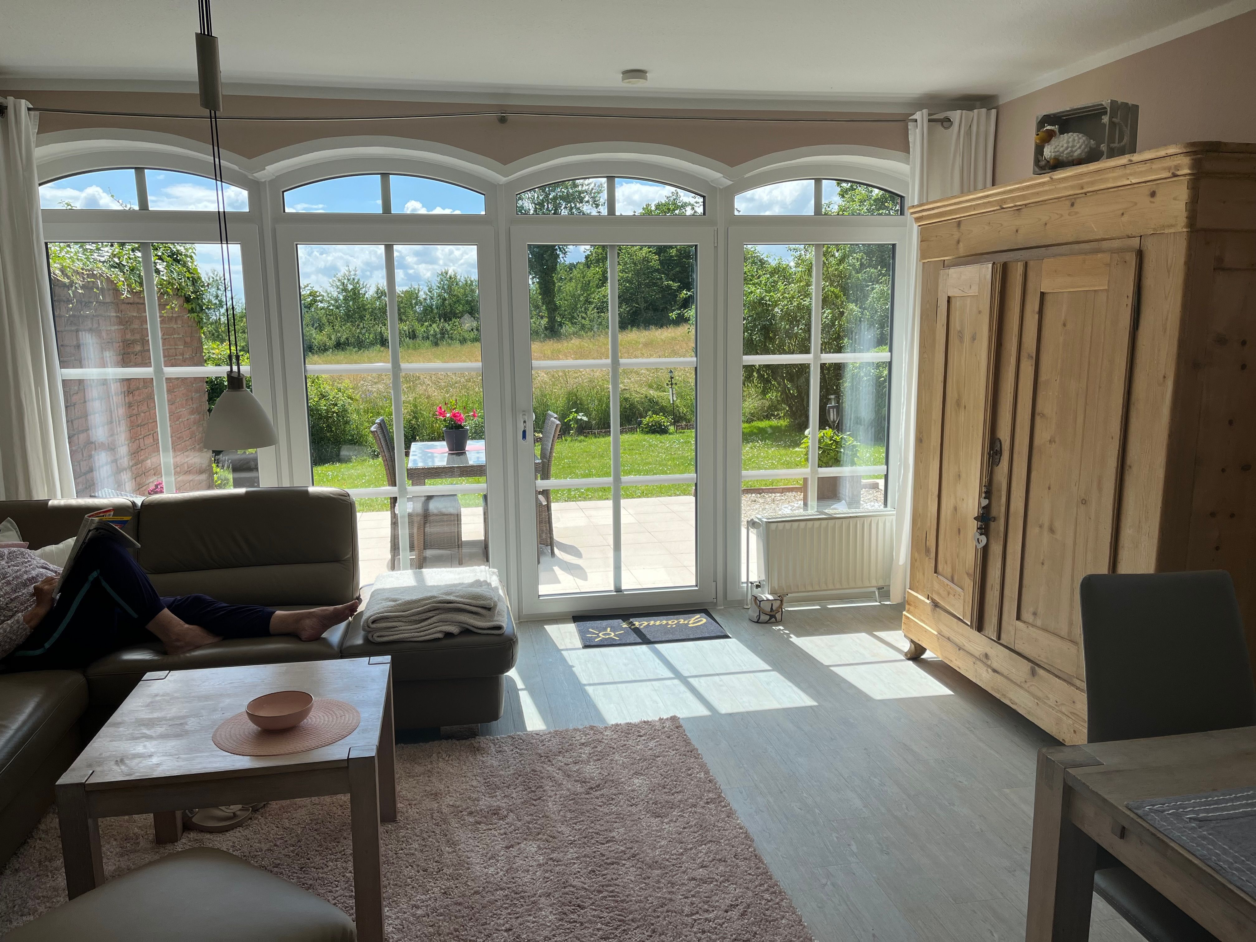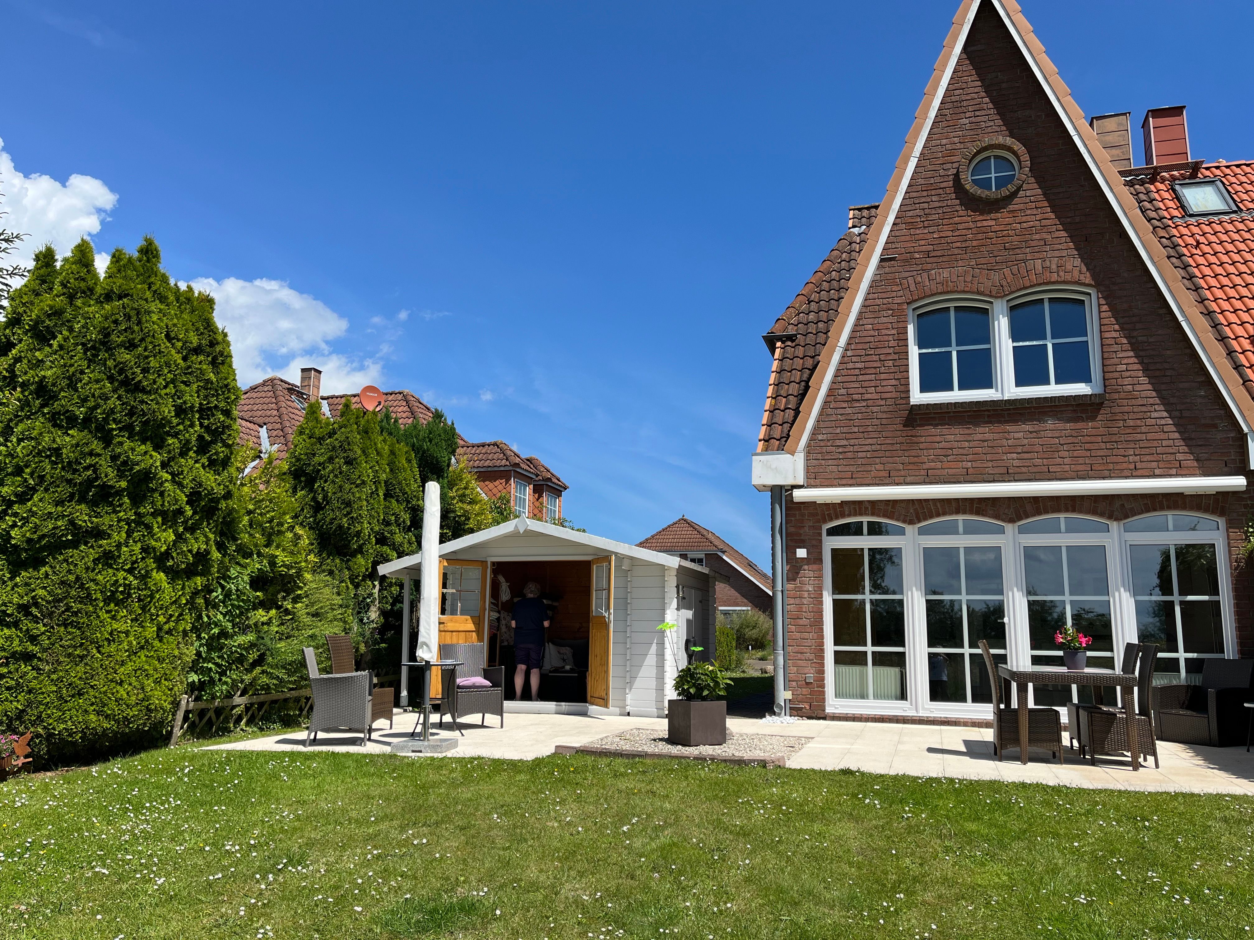 Im "Teichhaus" in Grömitz finden Sie auf 109m² über 3 Etagen verteilt 1 Schlafzimmer mit einem Doppelbett und eine Galerie (2.OG) mit zwei Einzelbetten. Der hier angegebene Preis bezieht sich immer auf 2 Erwachsene und 2 Kinder. Vom Strandaufenthalt, sportlichen Aktivitäten und/oder ausgedehnten Wanderungen erschöpft können Sie sich in dem Wannenduschbad (1.OG) oder in der Dusche (Parterre) erfrischen. Zwei TV-Geräte (Wohnbereich und Galerie) sorgen für Unterhaltung und Information. Auf der Terrasse können Sie bei Ihrem Lieblingsgetränk nicht nur am Nachmittag relaxen, sondern auch den Sonnenuntergang genießen. Ihr PKW steht währenddessen auf dem hauseigenen Parkplatz. Trotz der herrlich ruhigen Lage, sind Sie in nur 10 Minuten zu Fuß am Strand, im modernen Yachthafen oder an der Steilküste. Um sich an einem Kaffee mit Kuchen, Mittag- oder Abendessen zu erfreuen, sind Sie - ebenfalls zu Fuß - in 20 Gehminuten im Zentrum, an der Seebrücke und auf der Promenade, wo Sie auch bummeln und shoppen und das kürzlich vollendete Wellenhallenbad nutzen können.